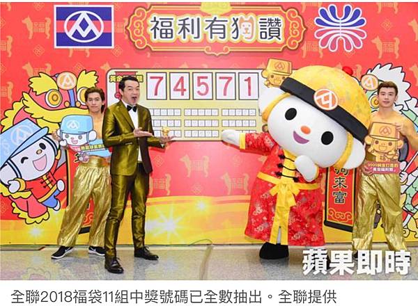 2018 全聯福袋頭獎開出 「黃金福利熊」獎號74571