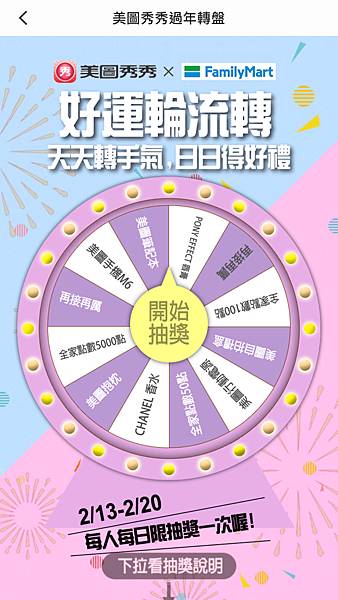 20180213-0220《美圖秀秀》推出好運輪流轉抽獎活動,活動期間只要使用《美圖秀秀》,並儲存照片,就能獲得每人每日限定一次的抽獎機會。