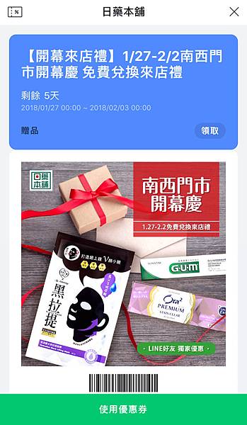 2018/1/27-2/2日藥本舖南西門市開幕慶免費兌換來店禮(記得先加line好友)