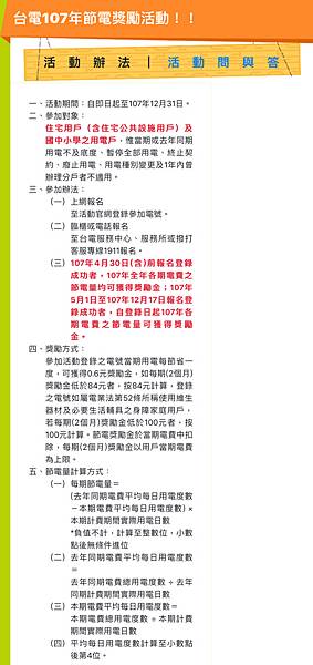 台電107節電獎勵活動新的遊戲規則要有上網登錄才有獎勵喔,不會上網的人也可以臨櫃或打電話辦理